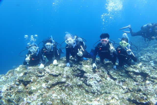 ちょっぴり耳抜きと格闘しながらも 皆さん海底に集合イェイイェイ(V)o¥o(V)