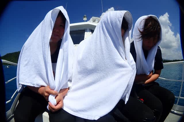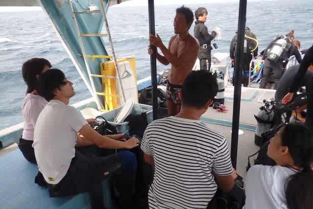 コンディション:東の風強く 波:6m 気温:32℃ 水温:28℃ 透明度~20m