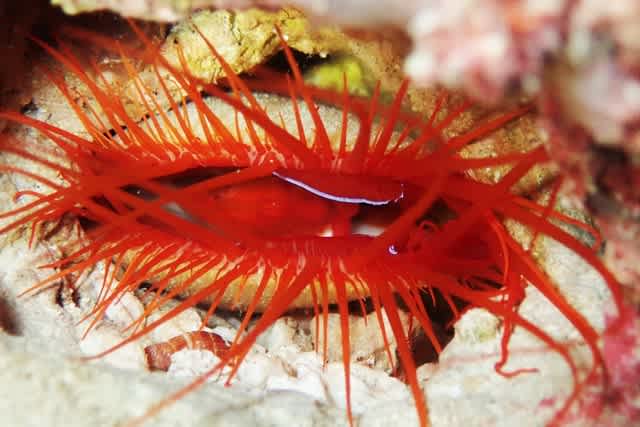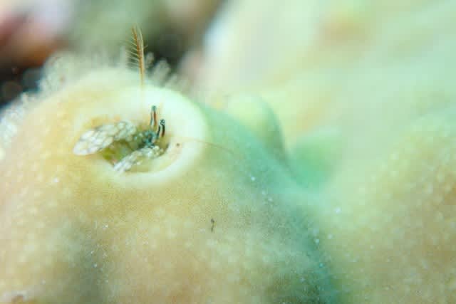 ひょっこりニシキカンザシヤドカリはんも日向ぼっこでホケ~っとしとりました( *´艸`)
