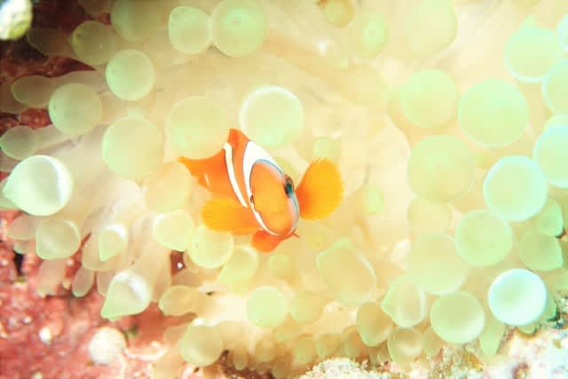 最近お気に入りのハマクマノミ幼魚ちゃん❤