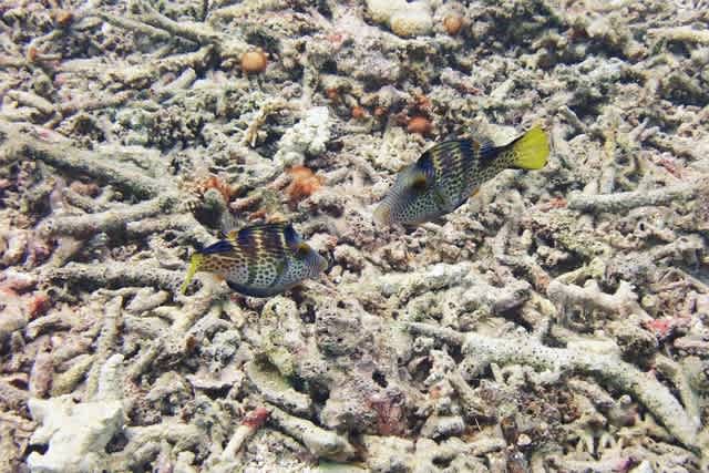 シマキンチャクフグがガン飛ばしあって喧嘩しておりました👹