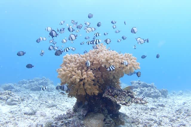 サンゴの周囲にミスジ&フタスジリュウキュウスズメダイがわさぁ~🐟🐠