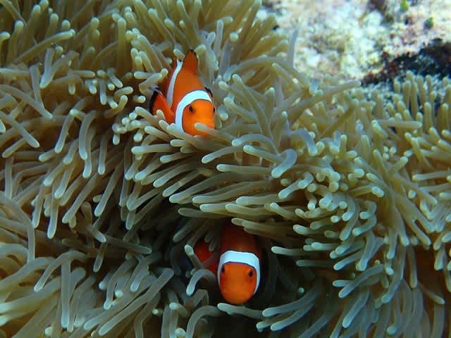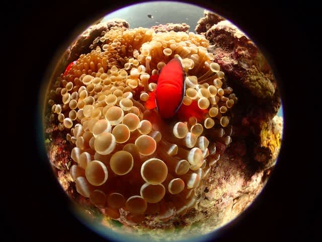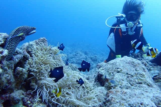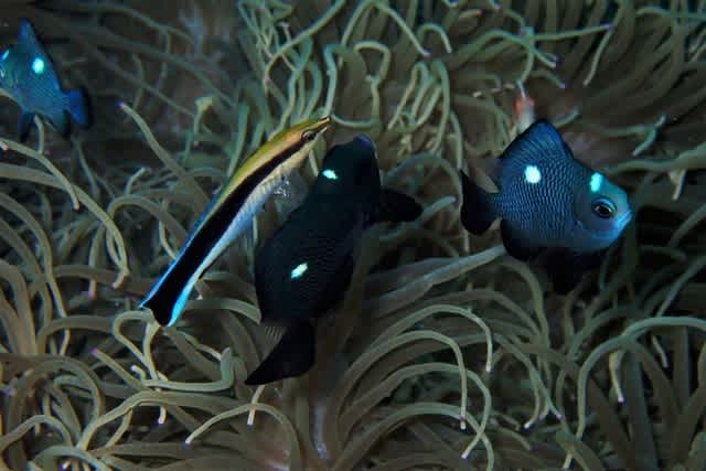 ウツボにクマノミにミツボシクロスズメダイに~ がわちゃわちゃ