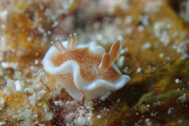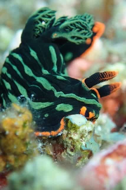 潮にゆられて しゃなりと身をひるがえす アカフチリュウグウウミウシ