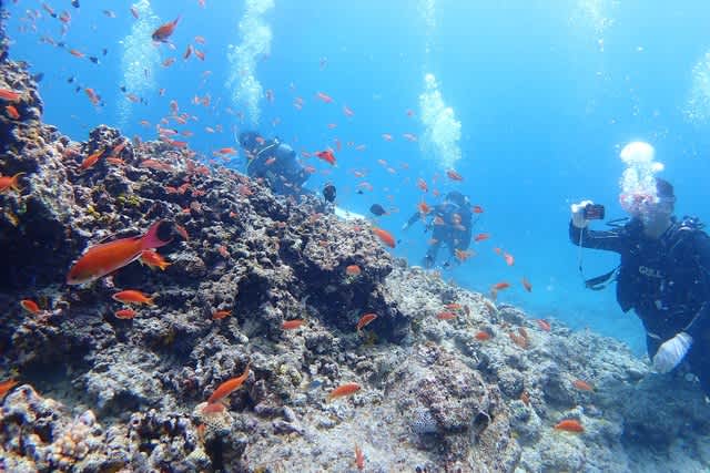 賑やかなアカネハナゴイとキンギョハナダイの乱舞に見惚れたりと