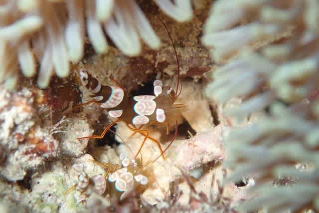 イソギンチャクハウスの中で仲良しな イソギンチャクモエビ