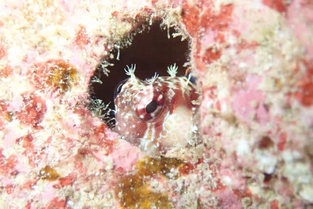 台風が怖いのか いつもより深めに穴に潜るエリグロギンポ