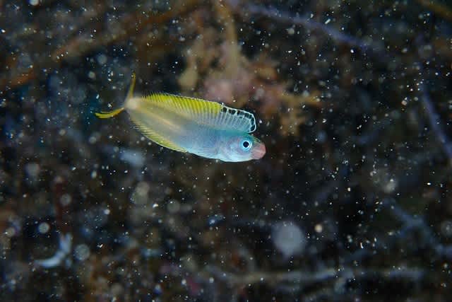 頭のアホ毛2本がナイス なオビテンスモドキ幼魚