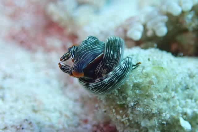 草むらからひょっこりっ!なつぶらなお目目のクロヘリアメフラシ🐮👀