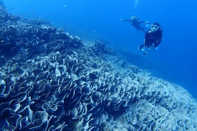 曲線の美しい リュウキュウキッカサンゴの群生に