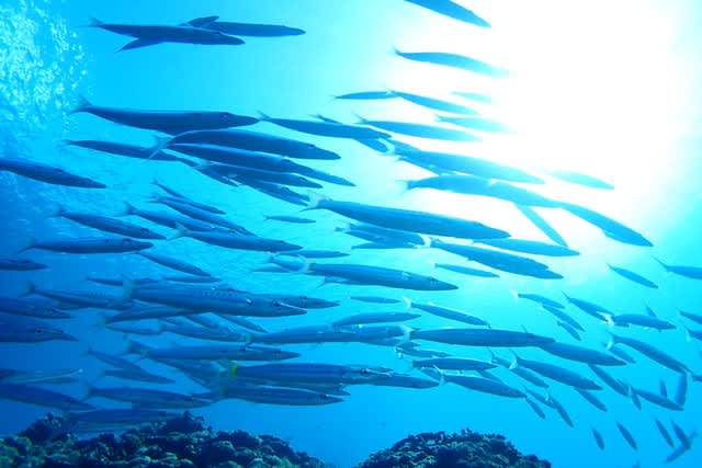 ノコギリダイの群れも 太陽背負ってキラッと良い✨ですね~