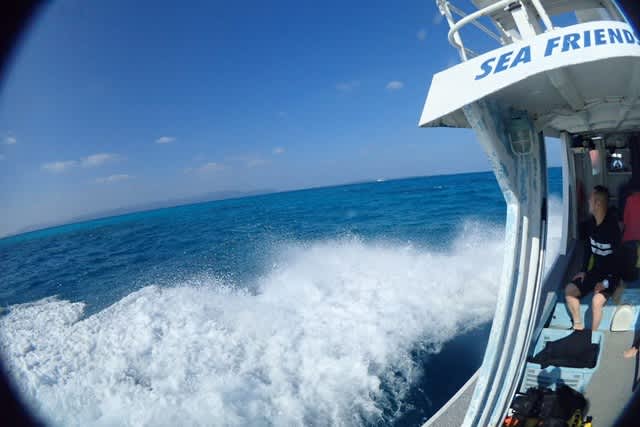 コンディション:くもり後晴れ 東の風 波2.5m 気温24℃ 水温25℃ 透明度・かなり良い