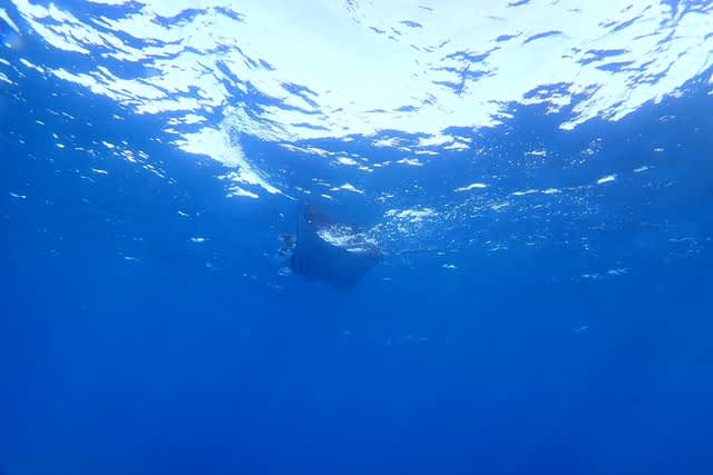 ポイントに到着すると今日はすこし諦めてたマンタが3枚水面にぷかぷか浮いてます!!!!