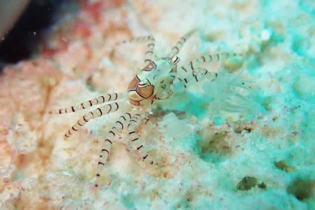 ドアップで素敵なオトヒメエビ 放射状のおひげがビューティフォー