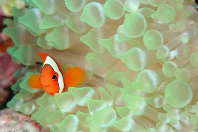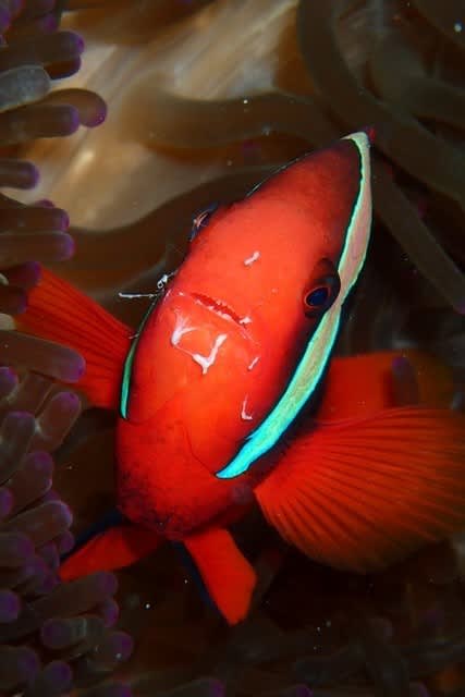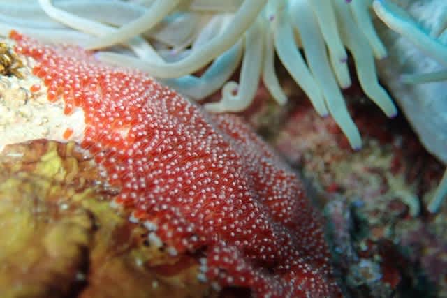 クマノミの産みたてタマゴは 生命力を感じる濃ゆい赤!