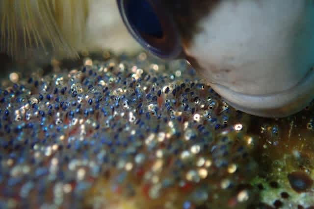 いよいよ孵化直前になってきた黒クマノミちゃんの卵たち