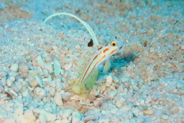 釣り竿のごとくしなる背ビレのヤシャハゼさん
