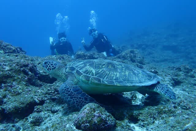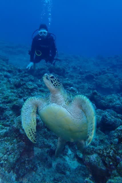 大きなアオウミガメ🐢っ!この子は近かった~(≧◇≦)🎵