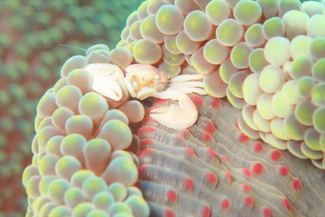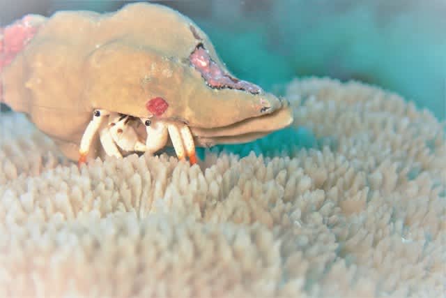 トゲトゲ星をお散歩中のアカツメサンゴヤドカリ🐚