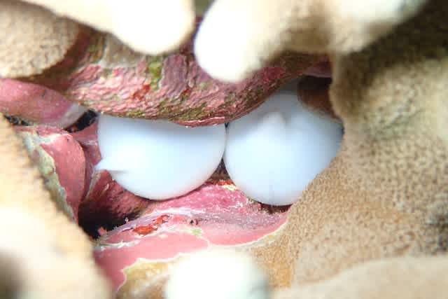 ユビエダハマサンゴに産み付けられたコブシメの卵もスクスクと成長中🐣