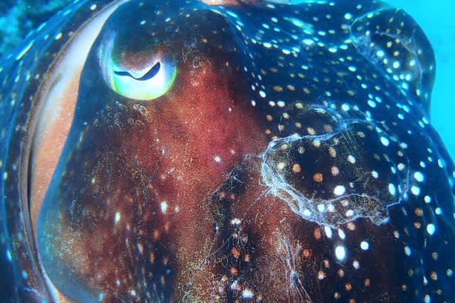 顔や身体には 他の個体との戦いの後 吸盤痕がいっぱいですね!