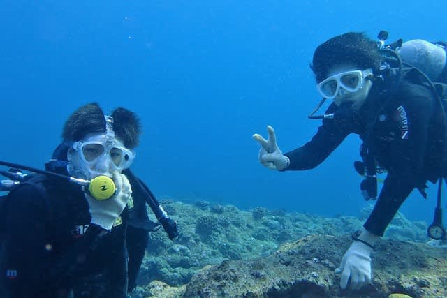 スノーケルなしで最初のポイントからダイビングチャレンジです(*’▽’*)