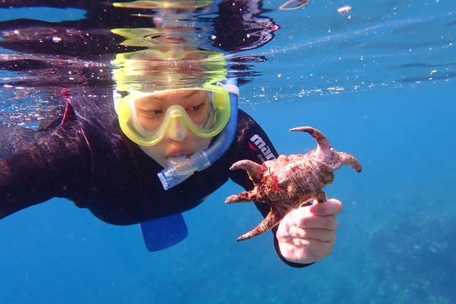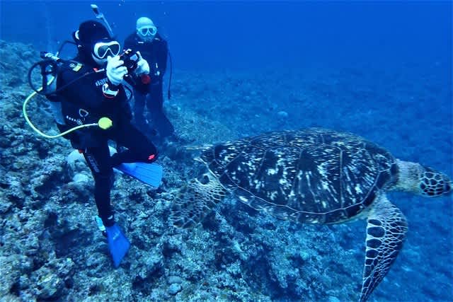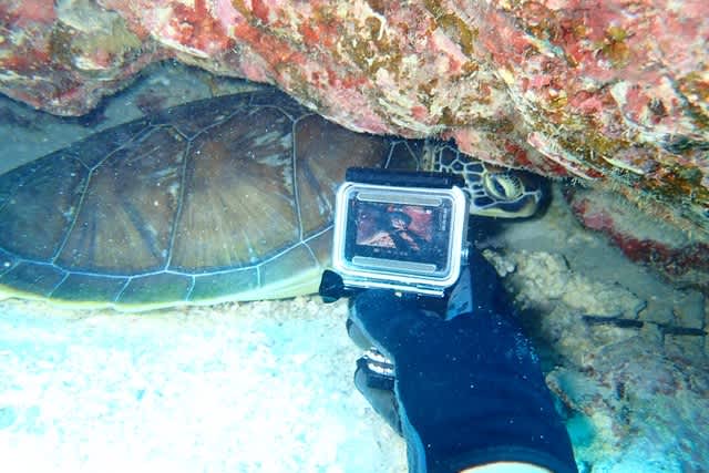 黒島では高確率で出会える アオウミガメをしっかりget!
