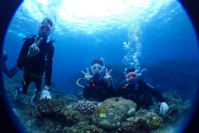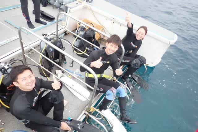 本日は地元ホテルで働く仲良し3人組と楽しく体験ダイビングをして来ましたよヾ(o´∀`o)ノ