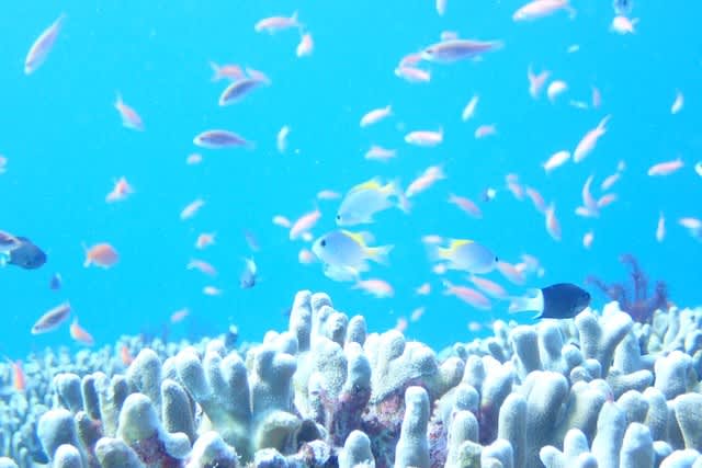 夏の水色に舞うスズメダイやハナダイのゆったりな世界♨