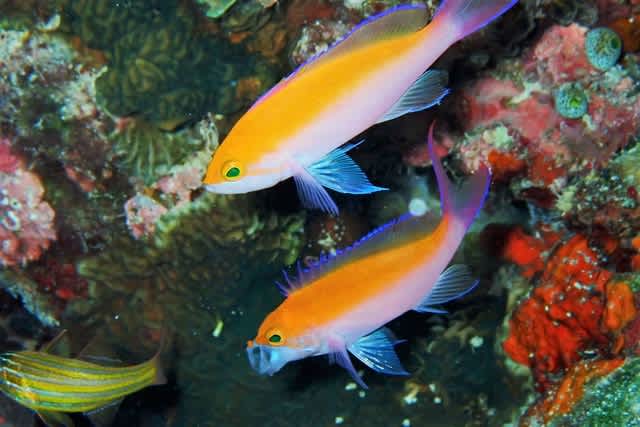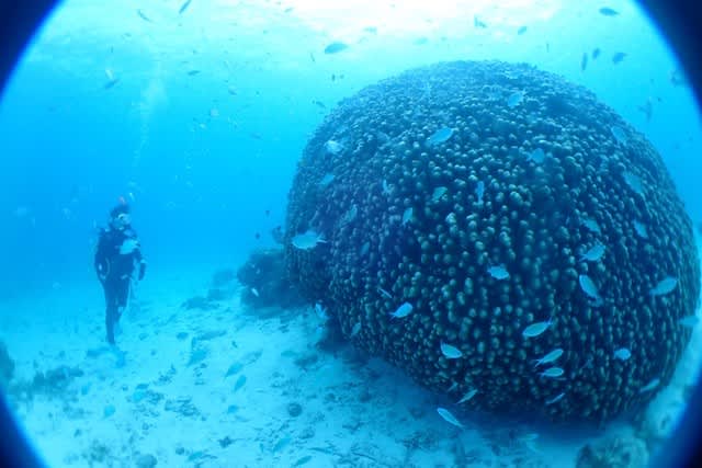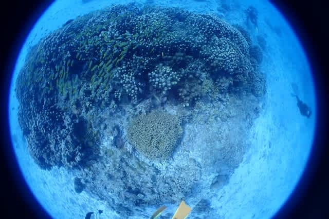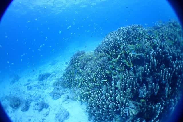 流れてる時は、大きなコモンシコロサンゴの回りに群れるヨスジフエダイの群れ綺麗ですね。