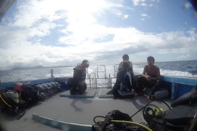 コンディション:くもり時々晴れ 北東の風 波2m 気温24℃ 水温24℃ 透明度・良い