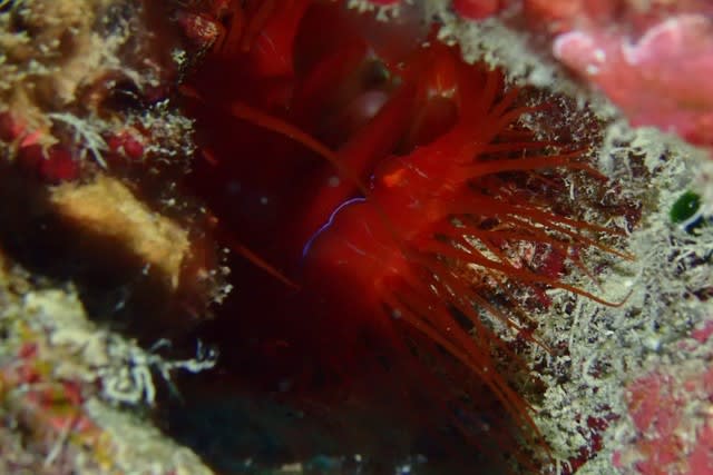 お次は、サンゴではなくて、【キンメモドキ】に覆われた根に向かいます。