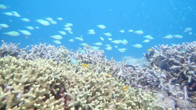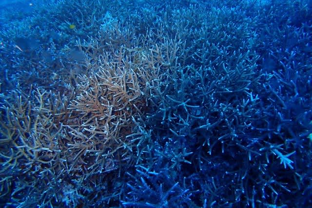岩の上をビッシリ覆いつくしたサンゴをみながら、