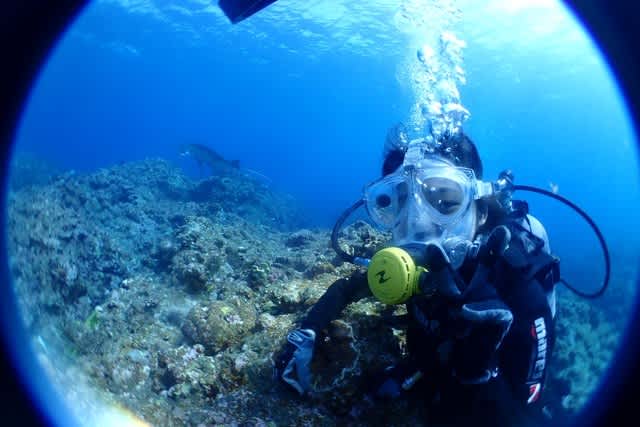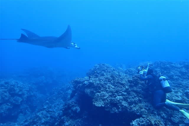 イソマグロ探しつつ泳いでいて 突如現れたマンタちん!!!!!