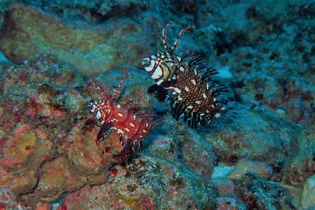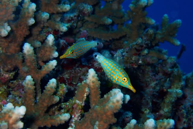 枝サンゴもいっぱい テングカワハギのアベックがお散歩中♨