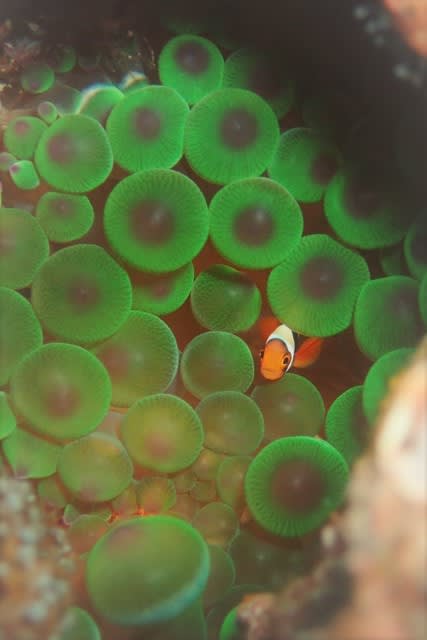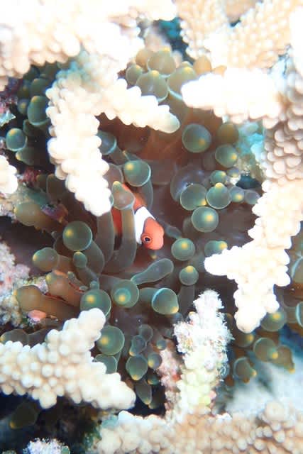 サンゴに囲まれた素敵なお家に住んでいる ハマクマノミちび子🏠