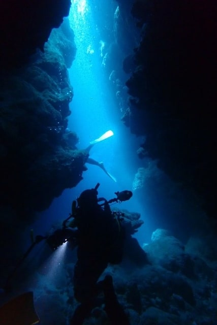 その青の洞窟の中には ホワイトチップシャークのお子様が2匹