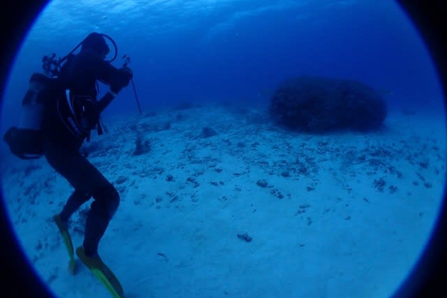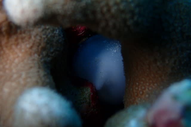 コブシメが産卵する「ユビエダハマサンゴ」に狙いを定めて、