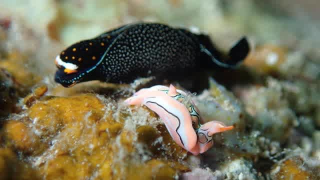 追いかけっこ中のオハグロツバメガイとトウモンウミコチョウ