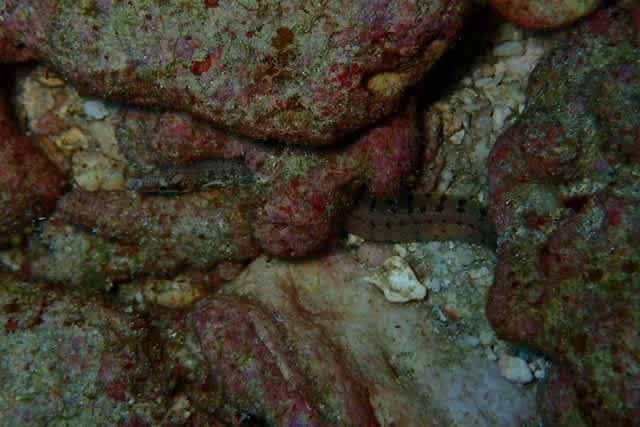 イシガキシカエルウオ、グルクン、オオアカホシサンゴガニ、エラブウミヘビ、ロクセンスズメダイ