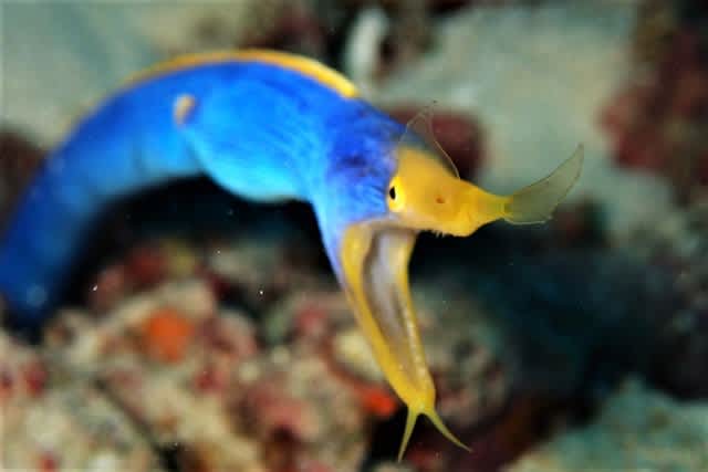 セクシーポーズ?人魚ポーズ?な 微笑みのイシガキカエルウオ🐸