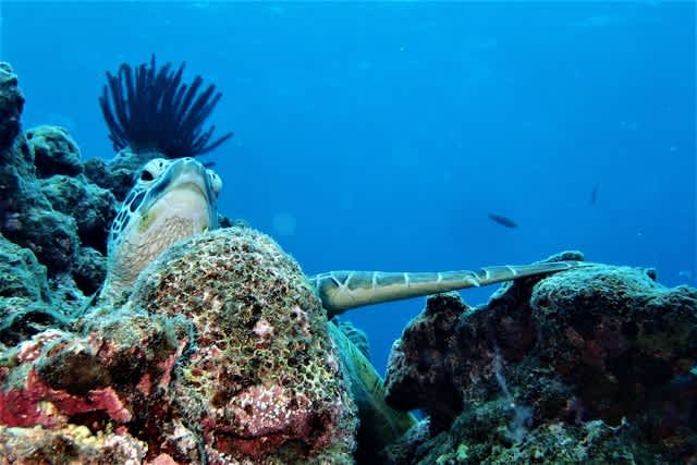 ボンバーヘッドっ!!??👀(◎_◎;)なアオウミガメ🐢💣