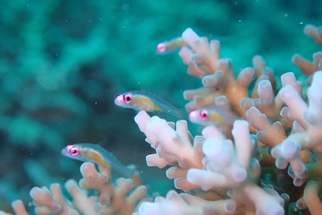 サンゴで一休み~ なうるうるお目めのアカメハゼ