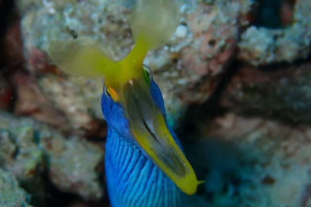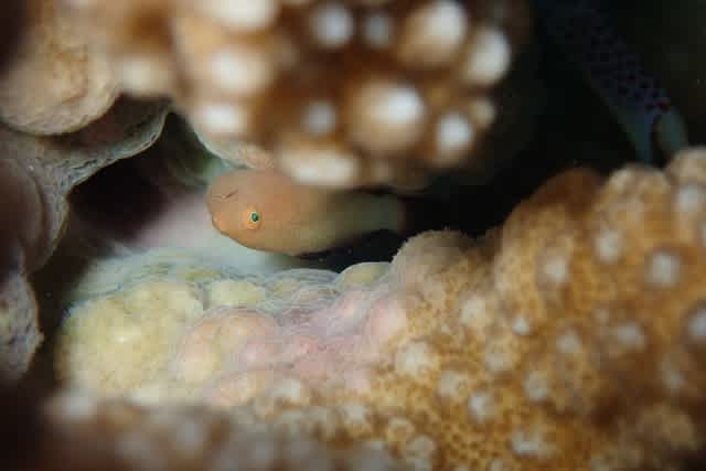 サンゴの隙間にはかわいいカサイダルマハゼも