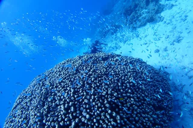 今日は暇そうにダイバーに近寄って来ます・・・・なんだか嫌な予感が(;^ω^)