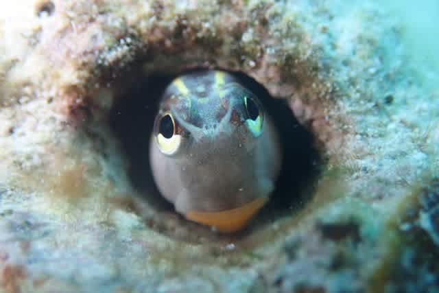 最近居ついてるヒゲニジギンポ、近寄ると穴から出てさくさく居なくなってしまいますけどね・・・