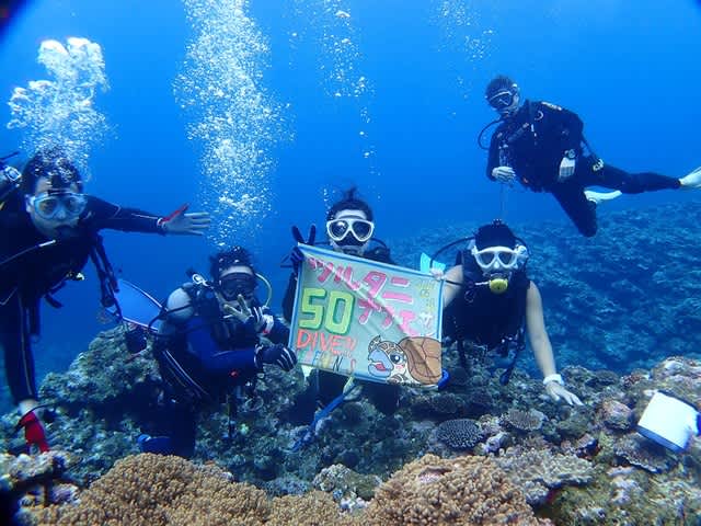祝50本記念ダイバーを囲んで集合写真です(≧▽≦)