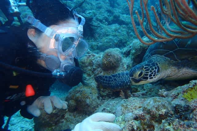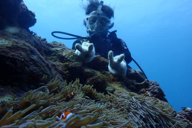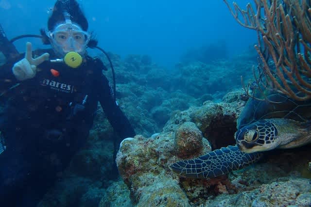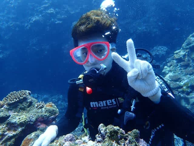 何回も体験ダイビングをしたことがあるそうで、とても上手。