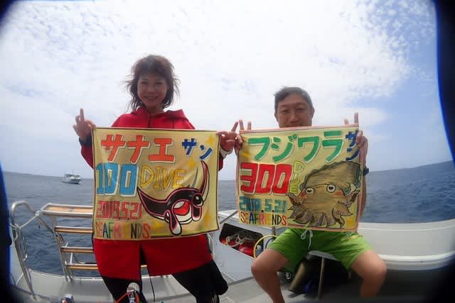 お二人とも一本目に100本、300本記念ダイブを石垣島でお祝いするために本数を合わせてきて