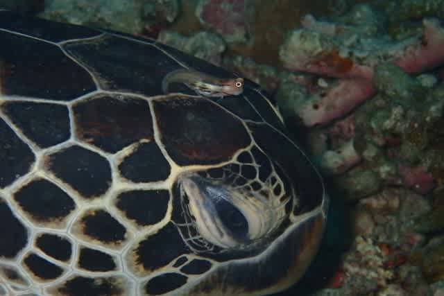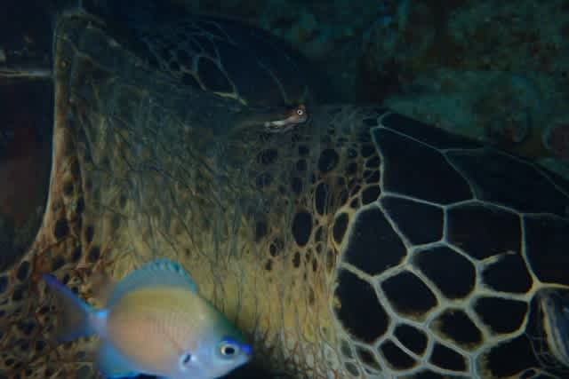 そんなカメの周りにスズメダイやイシガキカエルウオが遊びにきてます♪